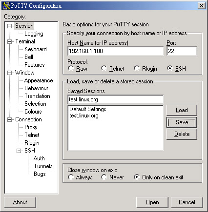 a. Server 部分為 test.linux.org 這部 192.168.0.2 的主機,欲使用的 User 為 test 這個帳號;