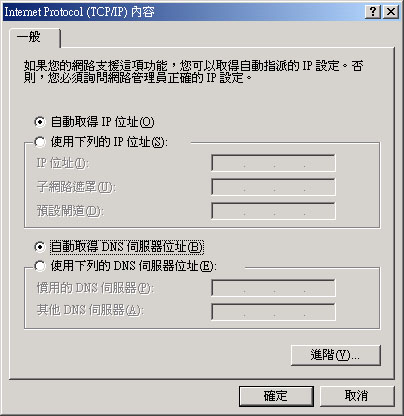 - Windows 2000 底下的 DHCP Client 設定方式: