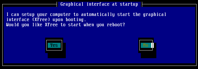 以我為例,因為我的Linux都是拿來當伺服器用的,而且對於X-Window不是很有使用的時機,所以我都是以run-level 3來登入Linux的,自然也就選擇No囉!
