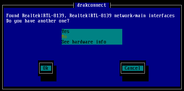 然後出現了硬體的選擇項目,如下所示,在下圖中顯示了兩張網路卡的模組,這是因為我有兩張網路卡,所以上頭會顯示兩個模組。所以,如果您的主機跟我的主機網路卡的形式或者是數量不同,那麼您主機上面的圖樣就會跟我不相同囉!注意注意。好了,在下圖中問你是否還有其他的網路設備?因為我知道沒有其他的網路卡了,所以當然就選擇 No 囉!