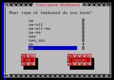 選擇正確的即可!通常我們選擇 us 這一個就對了!(註:修改的結果會記錄在 /etc/sysconfig/keyboard 這個檔案中!)