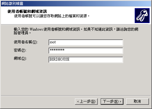 added interface ip=192.168.0.100 bcast=192.168.0.255 nmask=255.255.255.0 Password: <==這裡按 Enter Domain=[birdhouse] OS=[Unix] Server=[Samba 2.2.7a-security-rollup-fix]