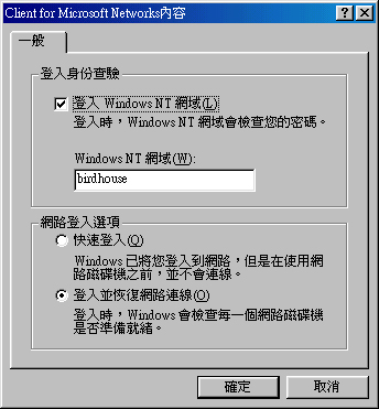 [root@test root]# mkdir /home/samba/netlogon [root@test root]# mkdir /home/samba/profiles [root@test root]# cd /home/samba/netlogon [root@test netlogon]# vi startup.tmp net time \\birdhome /set /yes net use U: \\birdhome\homes net use T: \\birdhome\tmp # net 是 Windows NT 網域的相關指令用法: # net time :表示目前 (client) 使用的時間要與 \\server (在這裡是 birdhome) # 同步的意思!有時候因為 Server 與 Client 不同步,某些程式 # 會有問題! # net use [device:] [directory] # device: 那個 device 是 Windows 的磁碟槽啦! # directory 是 SAMBA 主機相對的目錄! # 在我這個案例當中,每個使用者登入之後,他會在檔案總管當中, # 發現有個 U 槽,而且內容是 \\birdhome\homes 相同; # 發現有個 T 槽,內容則是 /tmp 喔! # 特別留意, startup.bat 必須要是 DOS 的格式,所以在 Linux 上編輯時, # 還要加上一些特殊的轉換動作! [root@test netlogon]# cat -A startup.tmp | tr '$' '\r' > startup.bat [root@test netlogon]# cat -A startup.bat net time \\birdhome /set /yes^M$ net use U: \\birdhome\homes^M$ net use T: \\birdhome\tmp^M$ # 看到了嗎?!每一行的最後面要加上有 ^M 這個 Windows 的傑作才可以! # 除此之外,我們還要將原先在 bird2000 上的 bird 這個使用的個人設定值 # 給他複製過來 SAMBA 主機上面喔!在 Windows 2000 預設的情況下, bird # 這個人的設定值會是在: C:\Documents and Settings\bird # 請將這個 bird 目錄完整的給他複製到 /home/profiles/bird 當中,也就是說, # 在 SAMBA 主機內的 /home/profiles/bird 裡面就有原先 Windows 2000 內的 開始 Application Data Favorites My Documents .... # 等等的檔案資料喔!然後這樣做: [root@test netlogon]# cd /home/samba/profiles [root@test profiles]# chown bird -R bird/ # 這個時候您應該已經將原先 Windows 的 bird 這個人的設定值給他複製到 # /home/samba/profiles/bird 當中了才對! |