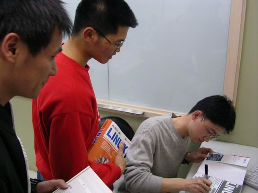 到了下午,人群陸陸續續的進入會場,現場擺了多本鳥哥的書呢,真是給他相當的感謝梁楓老大的用心啊!另外也要特別的感謝我們『鳥嫂』的幫忙,因為是他幫我們找零的呢 ^_^!現場的人氣還可以啦,但是最值得高興的是 ZMAN、哈克、鄧肯、ericshei 以及日京三子等台北幫的朋友來助人氣,呵呵!鳥哥可樂的呢!不過可惜的是 Netman 因為在忙而無法出席~