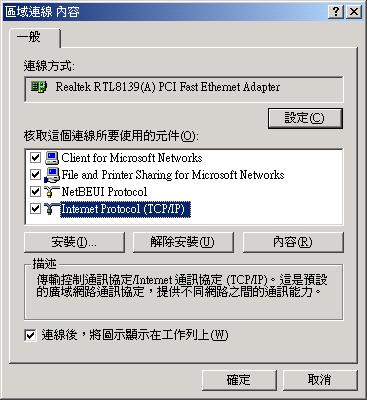 由於我們主要是使用 Linux 主機來連線上 Windows 系統的個人電腦,所以在你的 Windows 系統中,網路就需要有以下的設定才能讓每台電腦看到對方!
