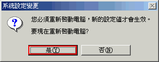 這裡要注意的是,由於工作群組設定不同的時候,你將會在網路上的芳鄰看不到你設定的其他區域網路上的電腦,要在『整個網路』中才會看到,所以:最後,按【確定】鈕回到【組態】頁面再按【確定】鈕等待 Windows 更新網路組態..再從新啟動電腦即可!這樣一來就可以開始資源分享的設定囉!