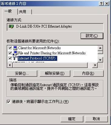 使用 Windows 2000 做為主機分享 ADSL 的頻寬-適合 ADSL 撥接制