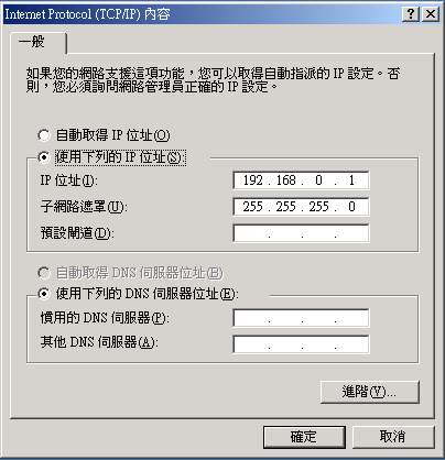 - Client 的電腦 IP 必須在:192.168.0.2~192.168.0.255 之間;