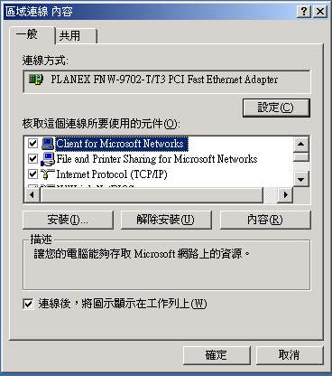 6. 以伺服器分享頻寬:Windows 2000 系統: