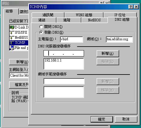 同樣的輸入你的主機 IP(或者是常用的 DNS 的 IP),然後再按確定回到圖一的畫面;(注意,主電腦與網域你可以不用寫也沒關係)